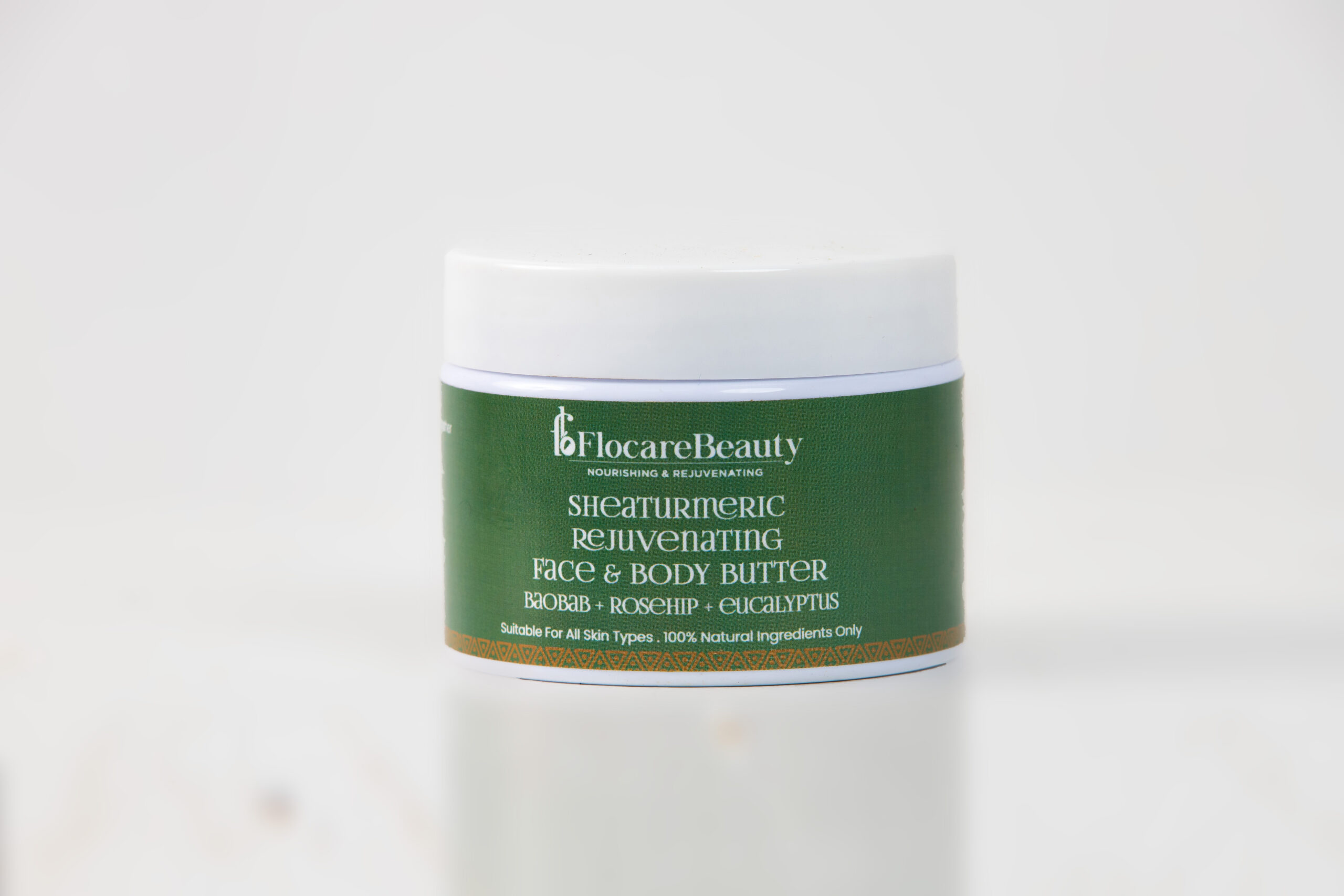 Hurray! This is that one solution for uneven skin tone you have been searching for! (you are welcome). We have carefully formulated this blend (with pure love!) for all skin types -especially the sensitive ones. Packed with baobab for deep hydration, rosehip for a natural glow and eucalyptus for a refreshing boost, this buttery blend melts right in! The magic of shea and tumeric leaves your skin feeling soft, smooth and totally revitalized, Get ready for skin that looks as good as it feels!